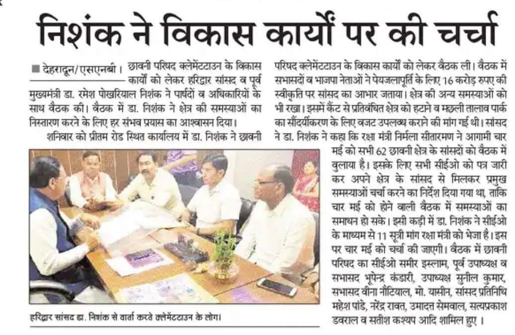 छावनी परिषद क्लेमेंटटाउन की समस्याओं का निस्तारण करने के लिए हर संभव प्रयास किया जाएगा।pic.twitter.com/LWIW7vNjO8
