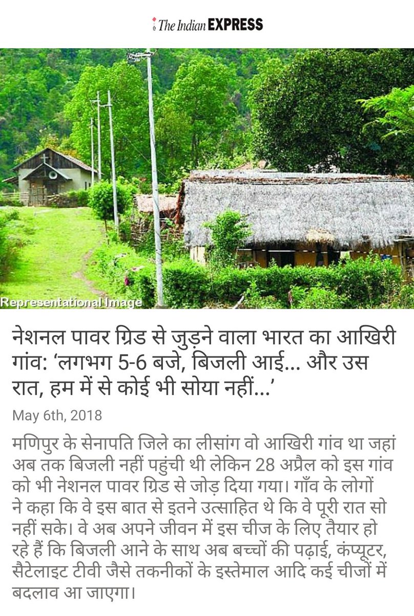 नेशनल पावर ग्रिड से जुड़ने वाला भारत का आखिरी गांव: ‘लगभग 5-6 बजे, बिजली आई... और उस रात, हम में से कोई भी सोया नहीं...’ http://indianexpress.com/article/north-east-india/manipur/leisang-indias-last-electrified-village-narendra-modi-5165019/ … via NMApppic.twitter.com/vW5EmHmj0k