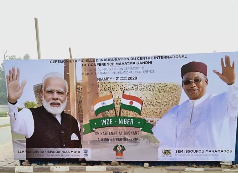 @IssoufouMhm at the inauguration of the#MahatmaGandhi International Convention Centre in Niamey, Niger. Project completed by Indian companies in 14 months. Delivering on the#IndiaAfrica partnership. New India's diplomacy at work.pic.twitter.com/CYt4yi3KJG