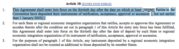 Crucial. Rules on entry into force no longer mention share of emissions (left). cf prev draft (right) #COP21pic.twitter.com/hTXr7qMXEp