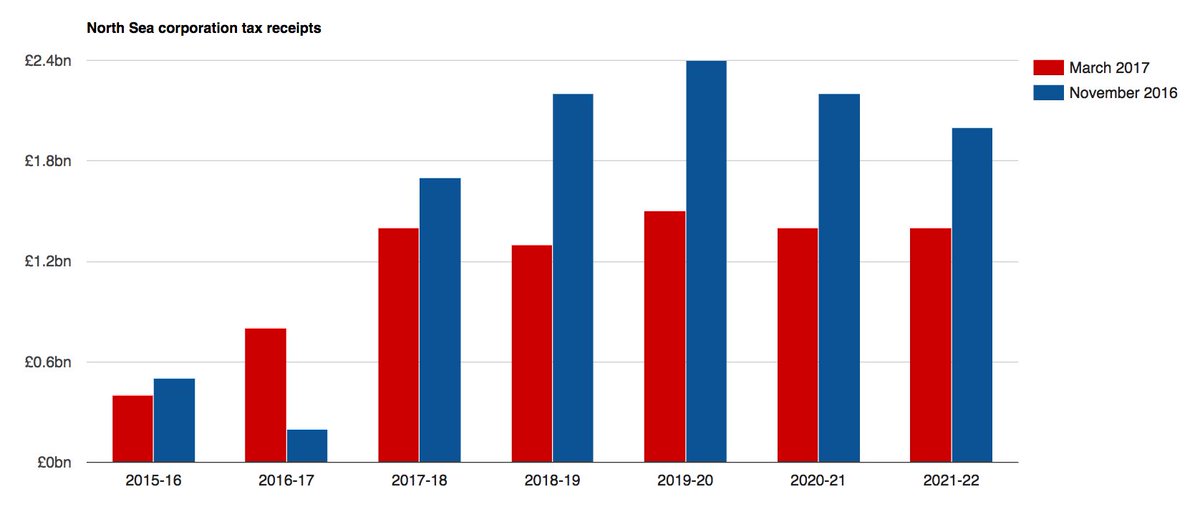 Big cut in OBR forecast North Sea corporation tax receipts for #Budget2017pic.twitter.com/gTe9K82ZlL