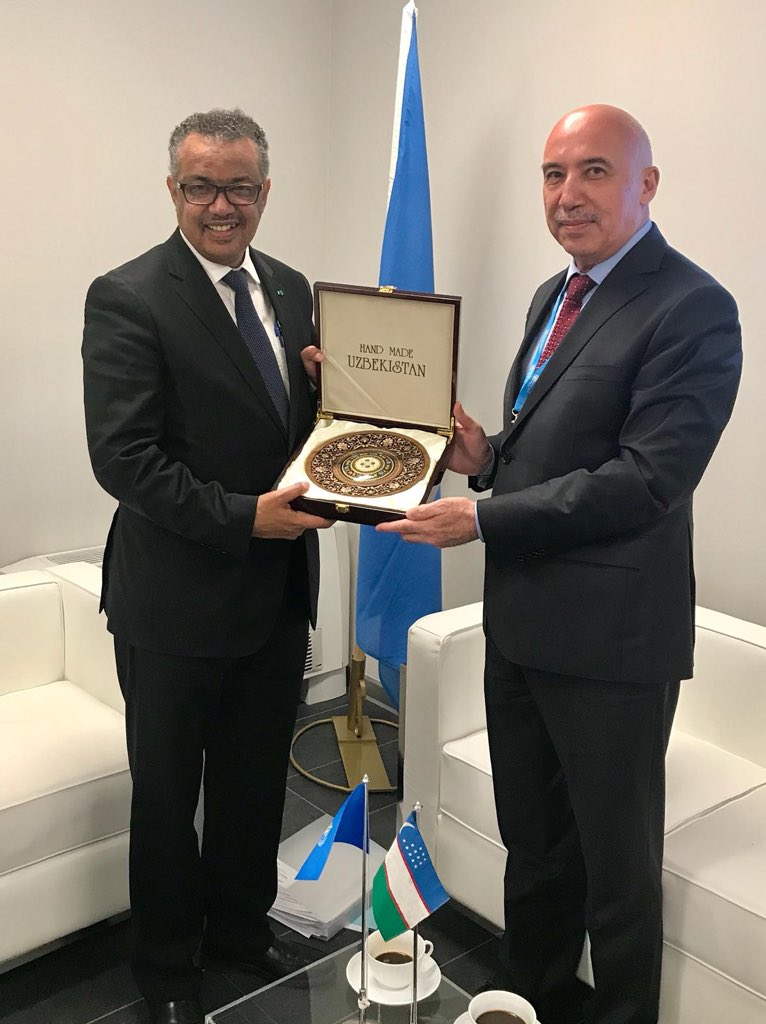 Just met with Minister Kayumovich of #Uzbekistan. We discussed #PrimaryHealthCare and how @WHO and @GOVuz can strengthen collaboration with other central Asian countries. Thanks for the invitation to Tashkent, Minister! #RC68Romepic.twitter.com/MB5eo0ELC2