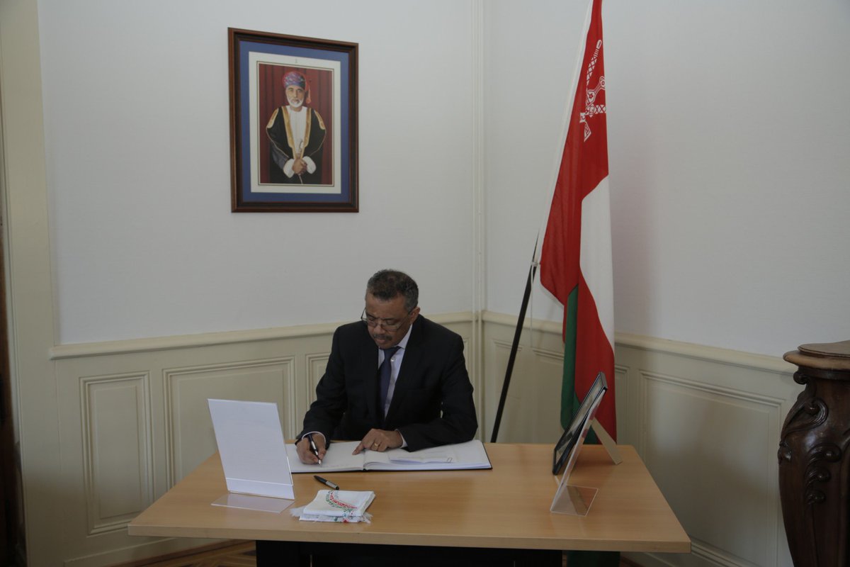 Moved and honoured to write in the book of condolences for His Majesty Sultan Qaboos of #Oman. Under his rule, Oman made notable improvements in health, including in neonatal, child & maternal mortality. His legacy will endure in the health of the people he served. Rest in peace.pic.twitter.com/wyRR5rGgu3