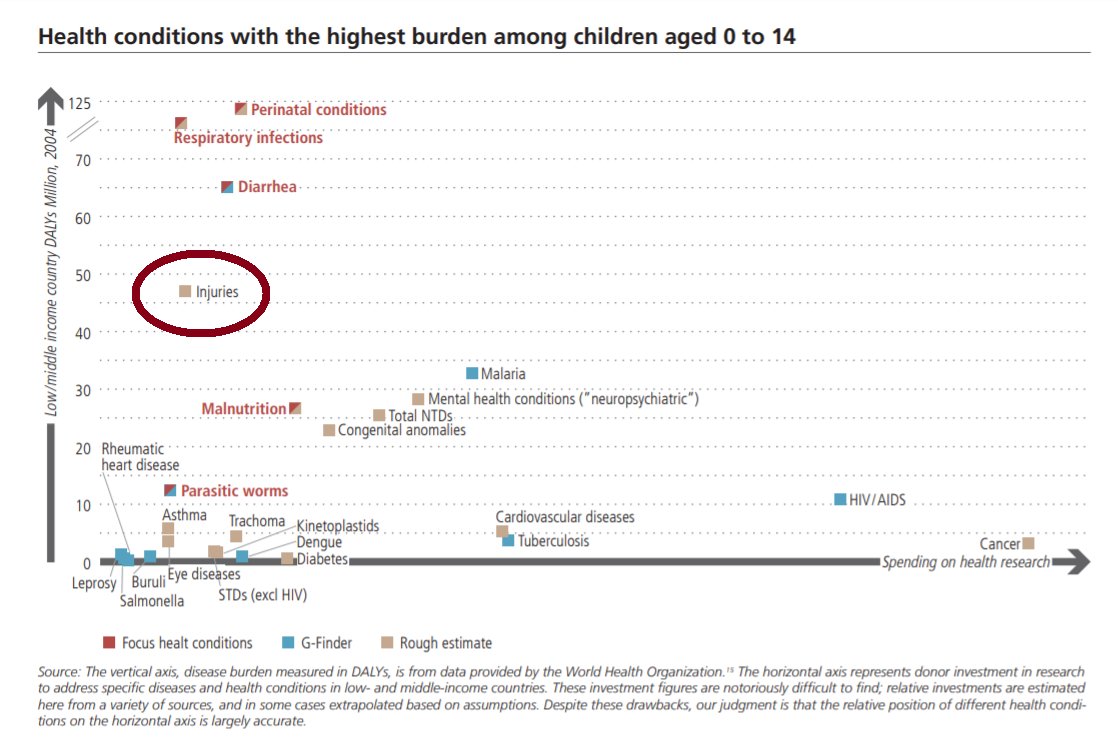 When I developed this graph back in 2012, traffic injuries jumped out. Most child "injuries" are traffic-related. This is a seriously neglected area of global public health, and I applaud