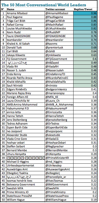 Who are the most conversational world leaders on Twitter? - @B_M #Twiplomacy study http://bur.sn/ndPLE pic.twitter.com/rjrGPjuknC