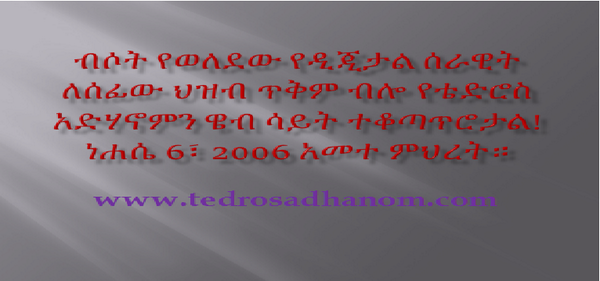 @DrTedros ብሶት የወለደው የዲጂታል ሰራዊት ለሰፊው ህዝብ ጥቅም የቴድሮስ አድሃኖምን ዌብ ሳይት ተቆጣጥሮታል! ነሐሴ 6፣ 2006 አመተ ምህረት። http://www.tedrosadhanom.com pic.twitter.com/1lPYq931qr