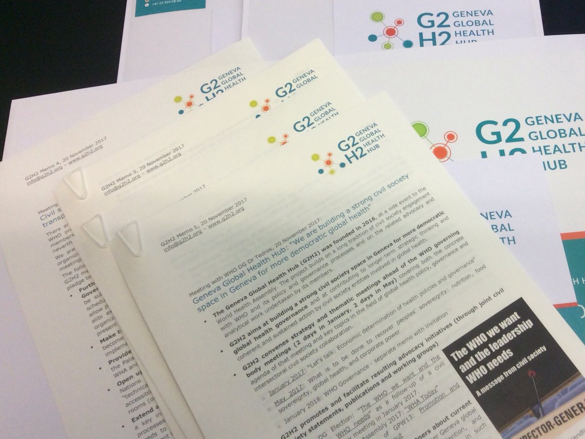 Thank you, @DrTedros, for welcoming our president and secretary at your office for a briefing about @G2H2_Geneva and civil society concerns regarding #healthgovernance, #FENSA, transparency of @WHO processes and more. A conversation to be continued - and broadened - in January! pic.twitter.com/1MNkWrAipl