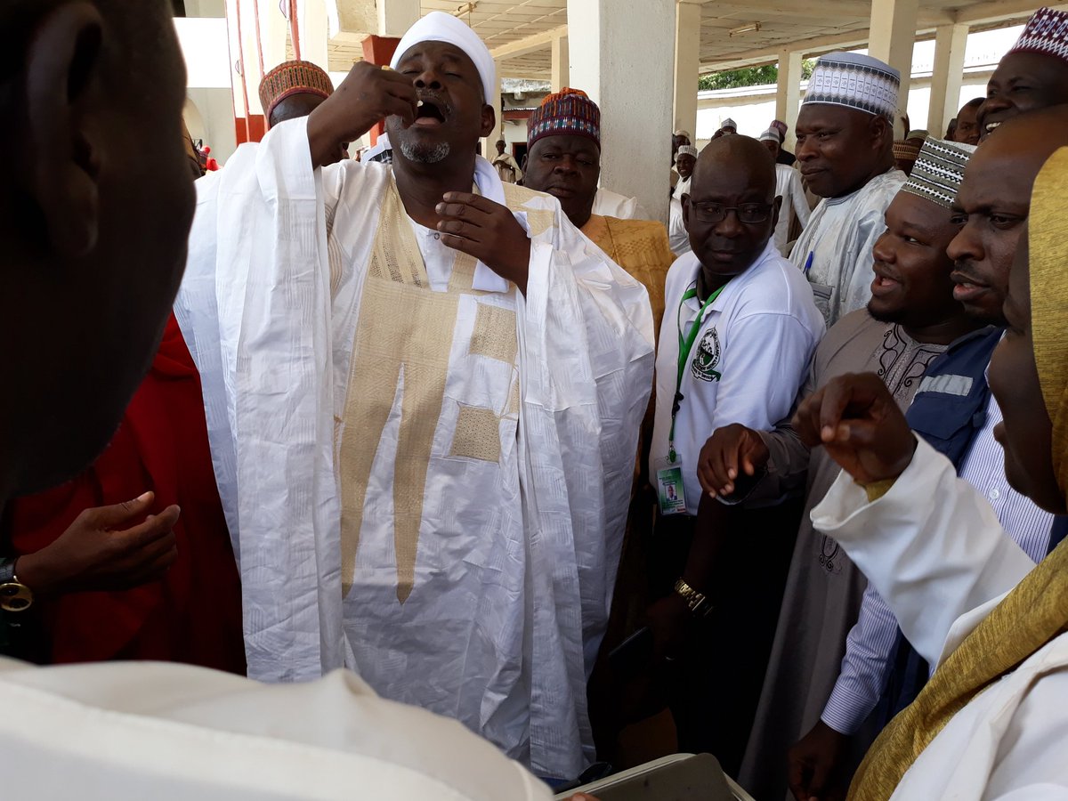 HRH Alh Bello Ahmadu taking his dose of OCV at the flag off venue yesterday while the WHO consultant for Mubi North and South delivered the goodwill message on behalf of all partners present.pic.twitter.com/JIdMD8weXA