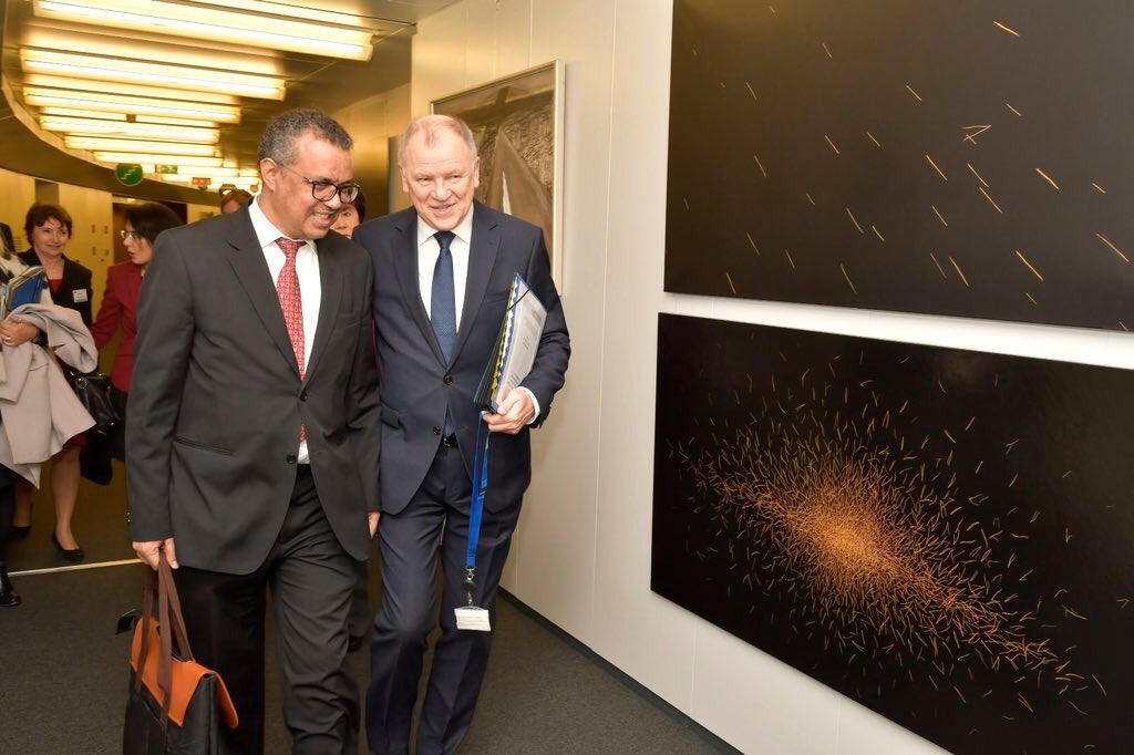 Great meeting with my friend Commissioner @V_Andriukaitis. Thank you for the strong role of the EU 🇪🇺 on global health! We discussed WHO's strategic plan, how to deliver #HealthForAll, antimicrobial resistance and health security. Looking forward to a closer collaboration.pic.twitter.com/vlou4UlyLe