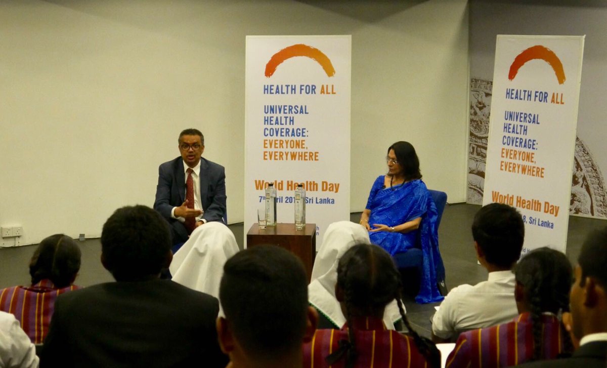 On #WorldHealthDay I had a very engaging encounter with young students in #SriLanka. Very good questions on topics ranging from tobacco control to antimicrobial resistance. My sister Jaya, the @UNYouthEnvoy should be very proud of such smart students!pic.twitter.com/83xIZhT9vI