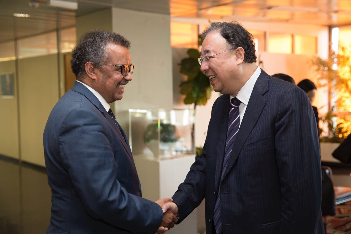 An honour to meet the Minister of Health of #China, Ma Xiaowei. He is in Geneva for the World Health Assembly. We discussed a number of topics, including WHO's General Programme of Work #WHA71pic.twitter.com/FedI9tNIL8