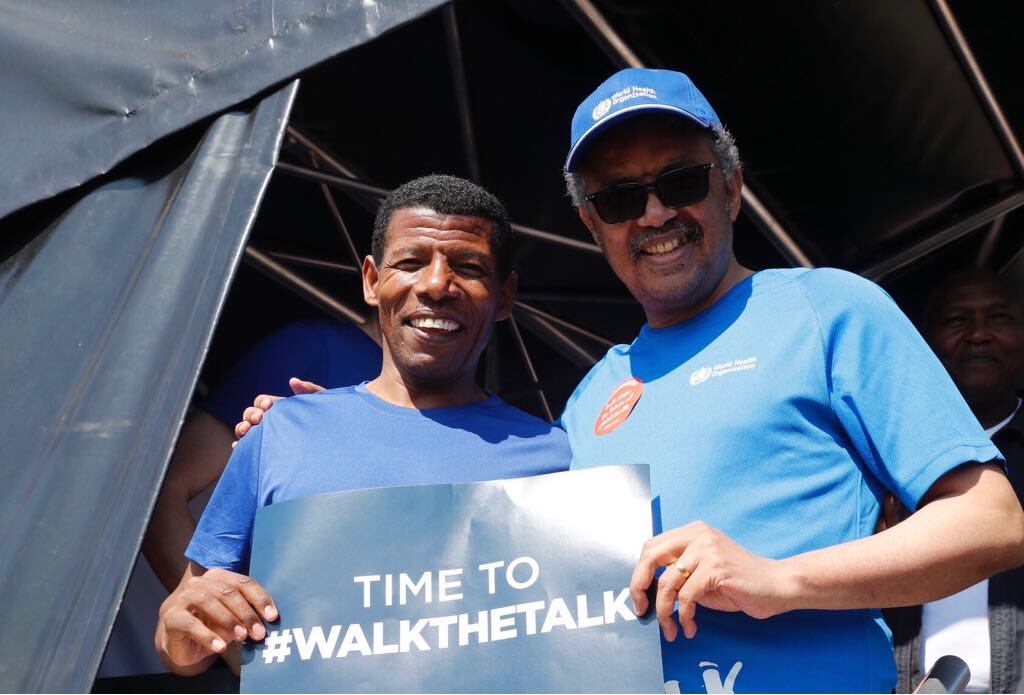 Today the greatest distance runner of all time, @Olympics legend @HaileGebr showed us how to walk (run) the talk. Thanks for joining the #HealthForAll challenge, my brother!pic.twitter.com/qu9cGrixhV
