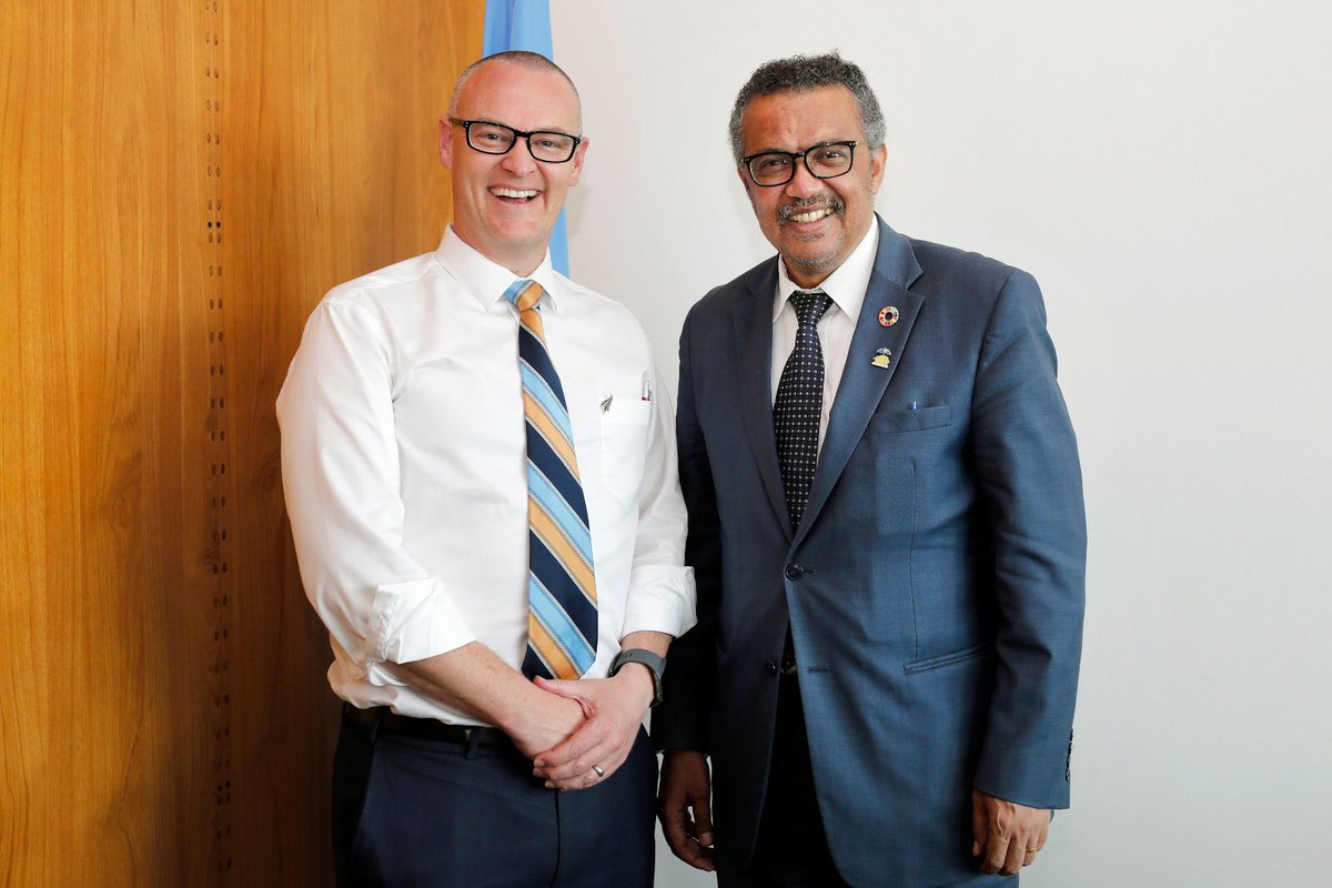 Great discussion with the Minister of Health of #NewZealand @DavidClarkNZ. We talked about equity and #HealthForAll. We need to address financial and physical barriers to health services to ensure no one is left behind #WHA71pic.twitter.com/mM8n0tQOfP