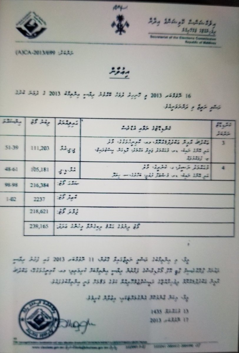 @ElectionsMv ge iulaan gai vanee 11 November 2013 gai feshunu riyaasee dhaurah Abdulla Yameen Abdul Gayoom hovunu kamasheve.