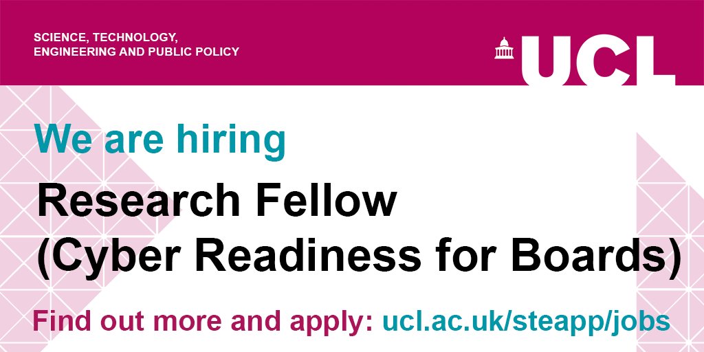 #cyber risks. Closing date 3 Jan, more details at http://www.ucl.ac.uk/STEaPP/jobs pic.twitter.com/xtwpBMaJAo