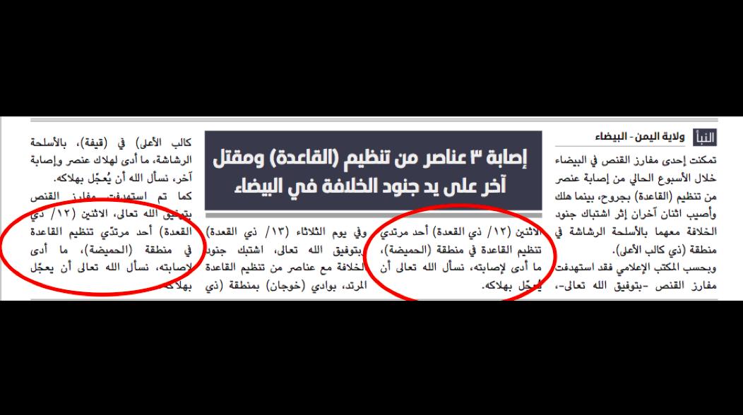 #ISIS manages to miscount its#Yemen ops last week as 3 instead of 2, repeats the same claim word-for-word, & adds up its victims to 4 instead of 3 (al-Naba', no.191, p.9)pic.twitter.com/nR5RhX8349