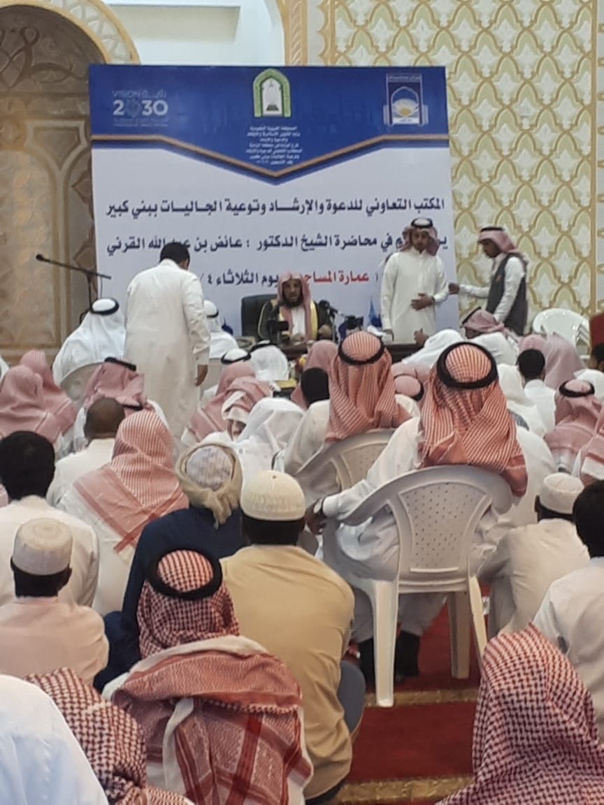شرفتنا في بني كبير حاضره وباديه يا شيخ عائض حفظك الله ونفع بك وكم نتمنى ان تكرر الزياره في قادم الايام فمثلكم وشرواكم مروره في ديارنا شرف نسأل الله ان يحفظك ويبارك فيك ويمتعك بالصحه والعافيه