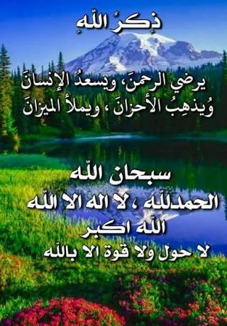 ذكر الله ينجيك من عذاب الله يوم القيامة غراس الجنة سبحان الله وبحمده قال رسول اللهﷺ:من قال سبحان الله وبحمده غرست له نخلة بالجنة". وقال رسول اللهﷺلأبي موسى الاشعري قال له:"ألا أدلك على كلمة من كنزمن كنوزالجنة: قلت بلى يا رسول الله،فداك أبي وأمي قال "لا حول ولا قوة إلا بالله"