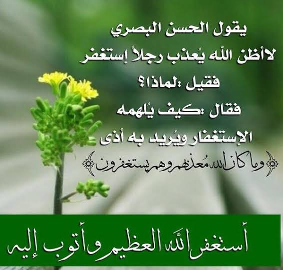 قال الله سبحانه وتعالى :" فقلت استغفروا ربكم إنه كان غفارا * يُرسل السماء عليكم مدرارا * ويمددكم بأموال وبنين ويجعل لكم جنات ويجعل لكم أنهاراً . قال رسول الله ﷺ :( يا أيها الناس استغفروا الله ، وتوبوا إليه ، فإني أستغفر الله ، وأتوب إليه في اليوم مائة مرة ).
