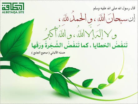 قال رسول اللّه صلى اللّه عليه وسلم : إن سبحان اللّه والحمد للّه ولا إله إلا اللّه واللّه أكبر تنفضنّ الخطايا كما تنفضُ الشجرةُ ورقها