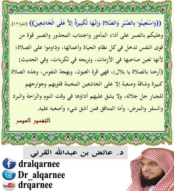 @Dr_alqarnee:((وَاسْتَعِينُوا بِالصَّبْرِ وَالصَّلاةِ وَإِنَّهَا لَكَبِيرَةٌ إِلاَّ عَلَى الْخَاشِعِينَ))[البقرة:45].pic.twitter.com/YsxbiNNkVm