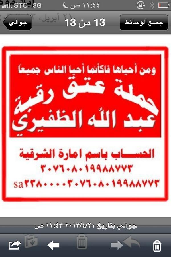@Dr_alqarnee # حمله - عتق - رقبه - عبدالله - الظفيري -رتويت خمس ثواني يشفع لك يوم القيامه يوم لاينفع لامال ولابنونpic.twitter.com/wiSe3I8elF