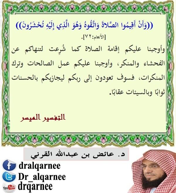 “@Dr_alqarnee: ((وَأَنْ أَقِيمُوا الصَّلاةَ وَاتَّقُوهُ وَهُوَ الَّذِي إِلَيْهِ تُحْشَرُونَ)) [الأنعام:72]. pic.twitter.com/zMxuwUYBMm”
