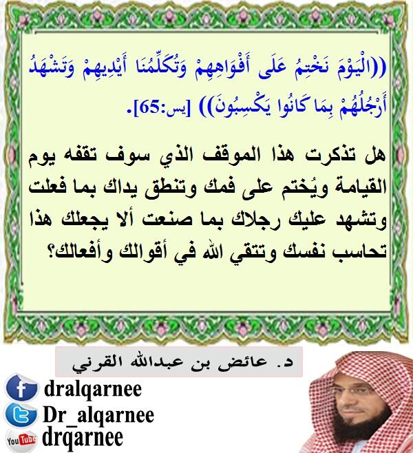 @Dr_alqarnee: ((الْيَوْم نَخْتِم على أفوَاهِهِم وَتُكَلمُنا أَيْدِيهِمْ وَتشهد أَرْجلهم بما كَانُوا يَكْسِبُونَ)) pic.twitter.com/vAF1EOvTRo”