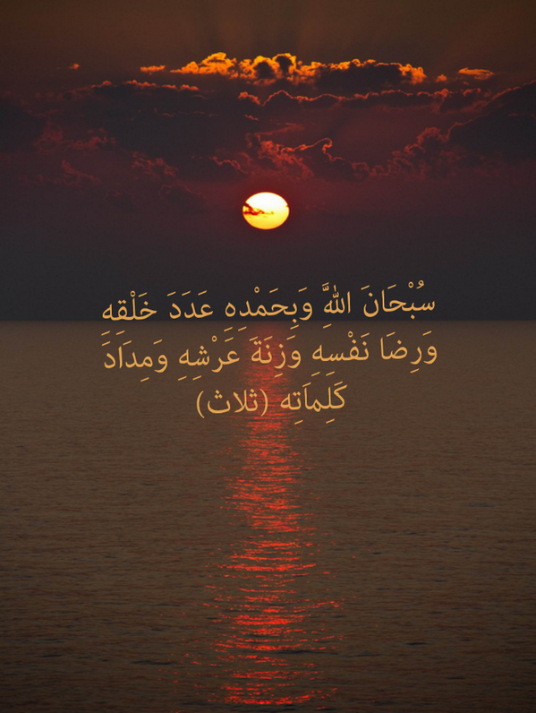 “@Dr_alqarnee: لا تنس {سبحان الله وبحمده، عدد خلقه، ورضى نفسه، وزنة عرشه، ومداد كلماته} (ثلاثاً). pic.twitter.com/WPotuzUoKg”