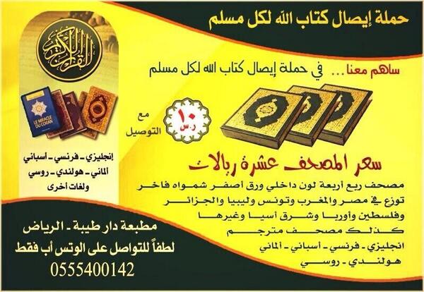 @Dr_alqarnee @Eesa_16 شاركنا وقف القرآن لك او لميت ١٠ريال للنسخة لتصل لمن يحتاجها او لك لتوزعها. انشرpic.twitter.com/qTFNH4qDTL