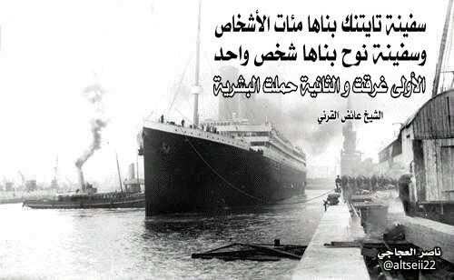@Dr_alqarnee تصميم ... (( بين سفينتين .. سفينة نوح عليه السلام و سفينة التايتنك ))#ناصر_العجاجيhttps://twitter.com/altseii22/status/422710392289509376 …