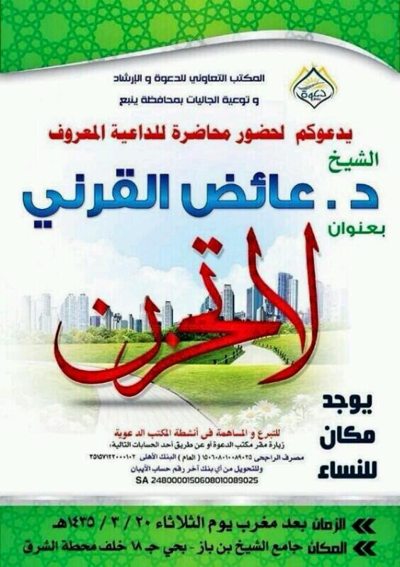 @Dr_alqarnee مهم جداً لايفوتكم ياشباب#ينبع محاضره الشيخ الدكتور عائض القرنيpic.twitter.com/WhupsawS4u