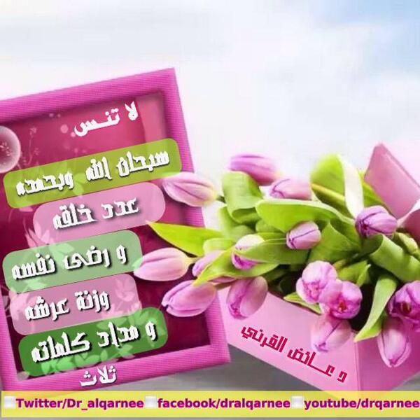 “@Dr_alqarnee: لا تنس {سبحان الله وبحمده، عدد خلقه، ورضى نفسه، وزنة عرشه، ومداد كلماته} (ثلاث). pic.twitter.com/l11N1rRLkx”