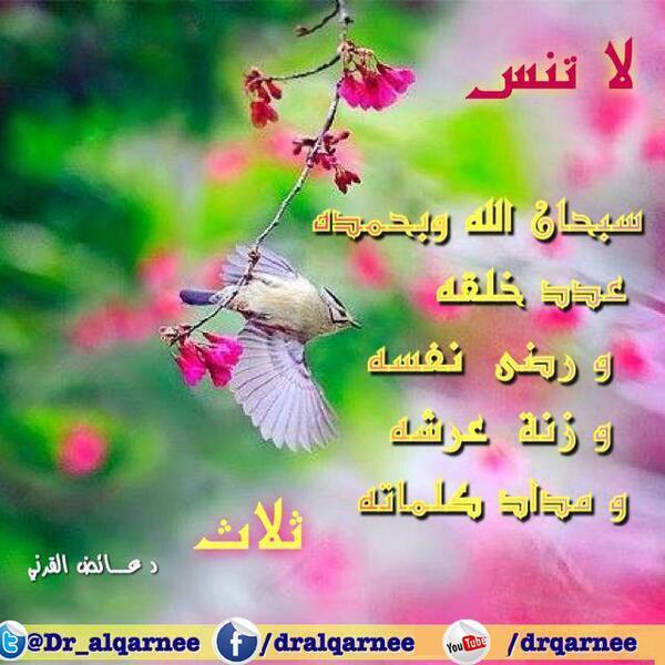 “@Dr_alqarnee: لا تنس {سبحان الله وبحمده، عدد خلقه، ورضى نفسه، وزنة عرشه، ومداد كلماته} (ثلاث). pic.twitter.com/vRXRZlhNZ3”