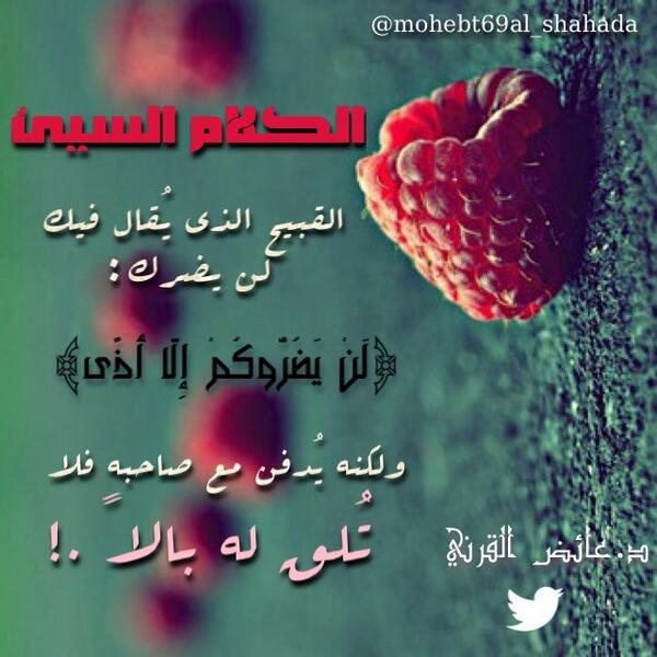 @Dr_alqarnee: الكلام السيئ القبيح الذي يُقال فيك لن يضرك "لَنْ يَضُرُّوكُمْ إِلَّا أَذًى" ولكنه يُدفن مع صاحبه فلا تُلق له بالاً.”Thanks. Twitter will use this to make your timeline better. UndoUndo