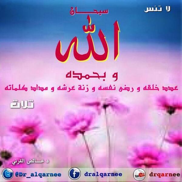 “@Dr_alqarnee: لا تنس {سبحان الله وبحمده، عدد خلقه، ورضى نفسه، وزنة عرشه، ومداد كلماته} (ثلاث). pic.twitter.com/TJTl5ZfWH1”