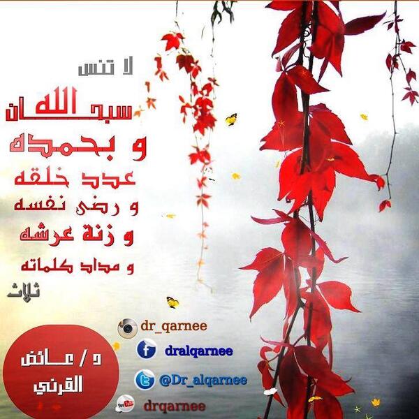 “@Dr_alqarnee: لا تنس {سبحان الله وبحمده، عدد خلقه، ورضى نفسه، وزنة عرشه، ومداد كلماته} (ثلاث). pic.twitter.com/4nhrL0hcGN”