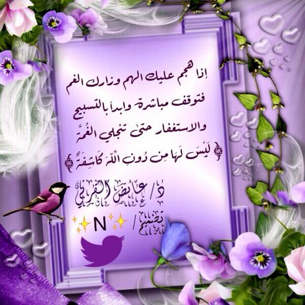 @Dr_alqarnee: إذا هجم عليك الهم وزارك الغم فتوقف مباشرة وابدأ بالتسبيح والاستغفار حتى تنجلي الغمة (لَيس لها من دونِ اللَّه كَاشِفةٌ).Thanks. Twitter will use this to make your timeline better. UndoUndo