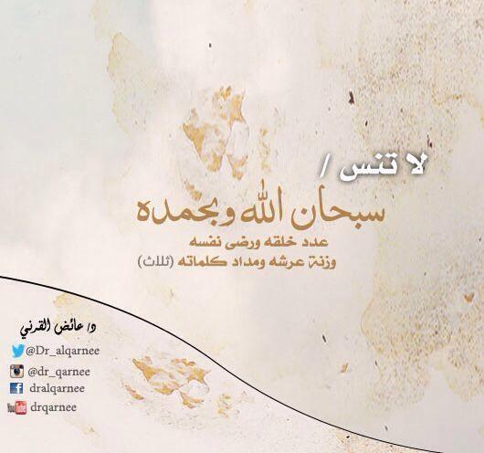 “@Dr_alqarnee: لا تنس {سبحان الله وبحمده، عدد خلقه، ورضى نفسه، وزنة عرشه، ومداد كلماته} (ثلاث). pic.twitter.com/wKy2bqvu7L”