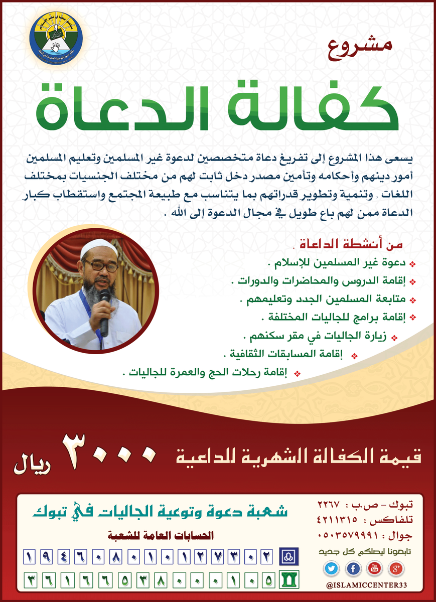 @Dr_alqarnee اكفل داعية في جاليات تبوك https://twitter.com/ISLAMICCENTER33/status/590157170668220416 … …