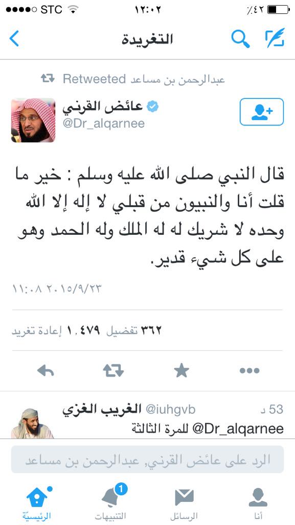 @Dr_alqarnee لا اله الا الله وحدهلا شريك له له الملك وله الحمد وهو علي كل شئ قدير
