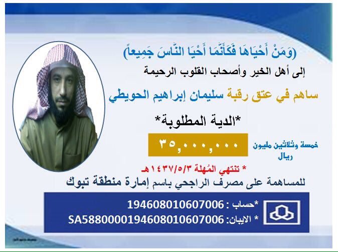 @Dr_alqarnee استاذي الكريم تكفى شاركوا معنى بعتق رقبة سليمان الحويطي حيث اخر مهله1436/5/3#عتق_رقبة_سليمان_الحويطيpic.twitter.com/o81EsL4tPU