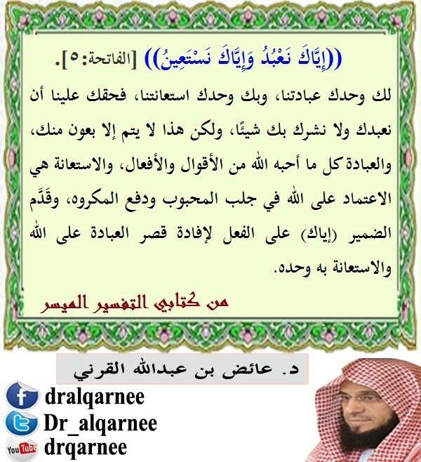 @Dr_alqarnee اياك نعبد واياك نستعين..فيها معنى الخضوع والعبوديه والتجرد