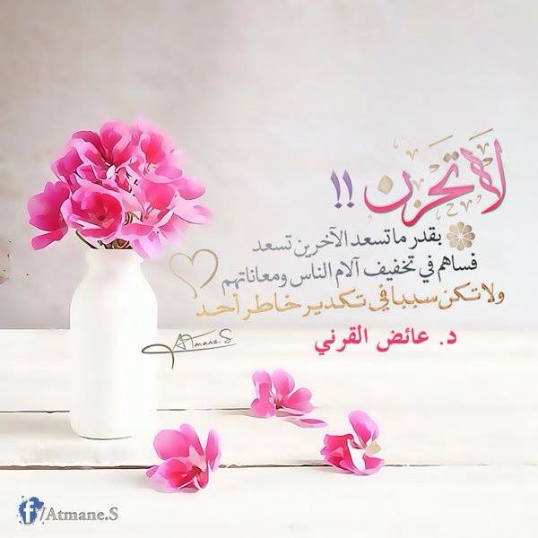 @Dr_alqarnee:لاتحزن بقدر ما تسعد الآخرين تسعد، فساهم في تخفيف الآم الناس ومعاناتهم ولا تكن سببا في تكدير خاطر احد. pic.twitter.com/D8cniNEDI8”