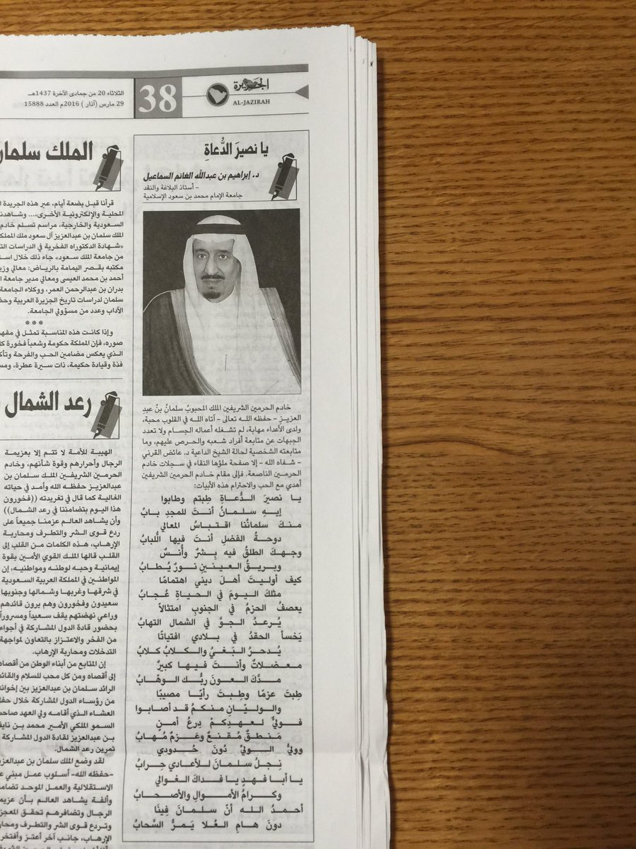 د. #عائض_القرني حفظك الله ، ومتعك بتمام العافية، أهديكم وأنتم في النقاهة قصيدتي المنشورة في الجزيرة