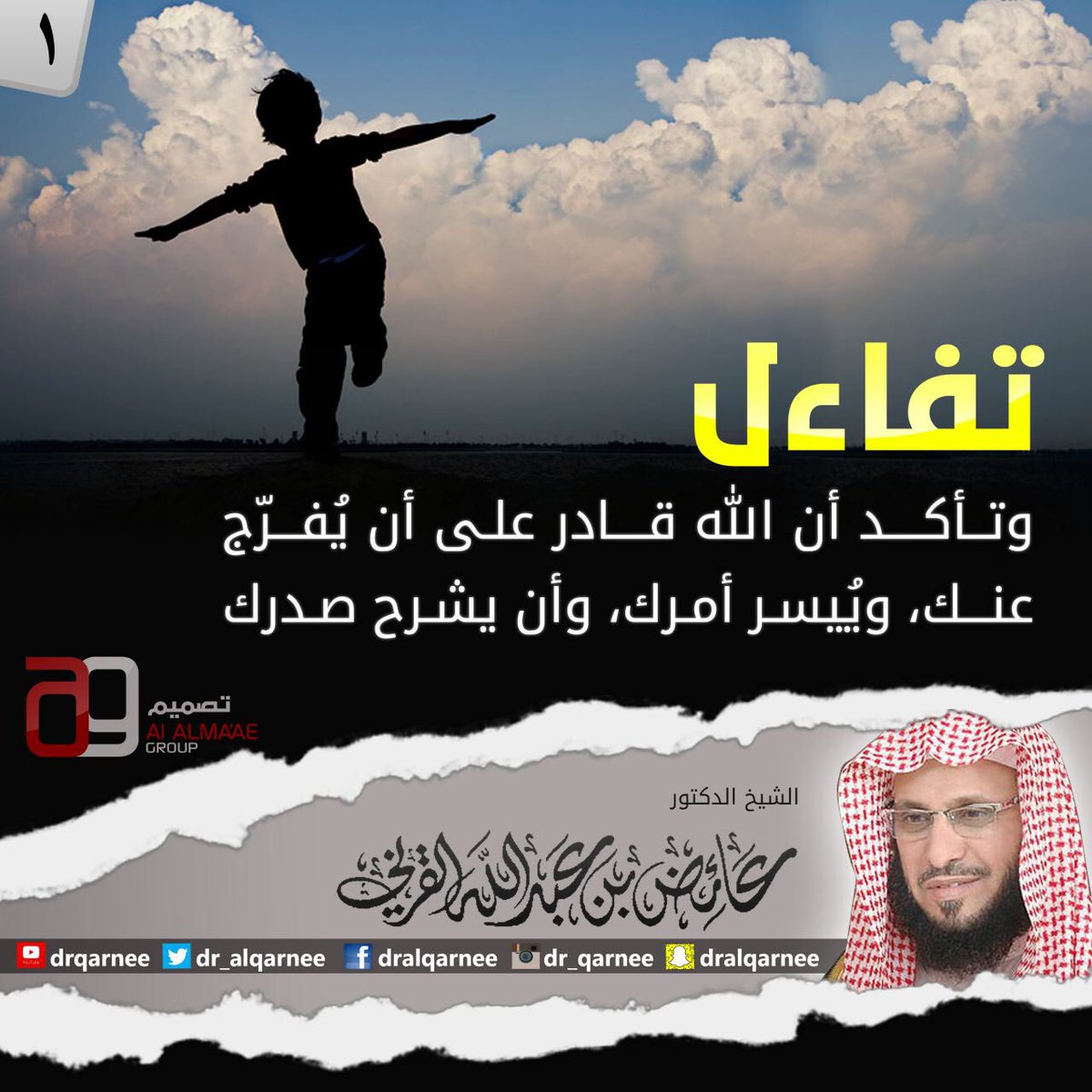 @Dr_alqarnee: تفاءل وتأكد أن الله قادر على أن يُفرّج عنك، ويُيسر أمرك، وأن يشرح صدرك.#غرد_بصورة#عائض_القرني pic.twitter.com/eyCLD06c4V”