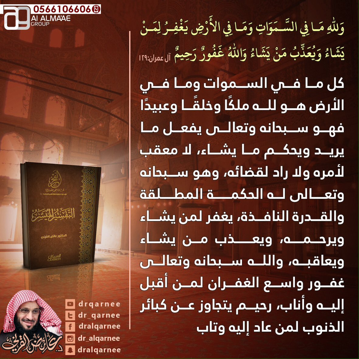 @Dr_alqarnee: تعالوا إلى#تدبر آية من كتاب الله جعله الله لنا شافعاً عنده.#عائض_القرني pic.twitter.com/q45ru7spGT”