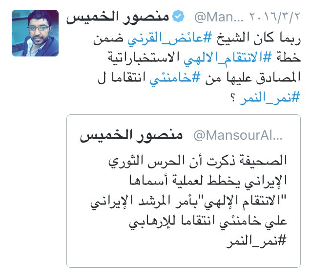 وصدقت تغريداتي حول حادثة محاولة اغتيال الشيخ عائض القرني @Dr_alqarnee https://twitter.com/dr_alqarnee/status/774660335399821313 …pic.twitter.com/rpmMhotPHH