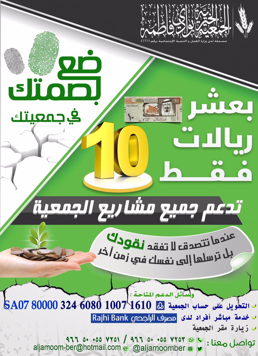 ادعم جميع مشاريع الجمعية بعشر ريال فقط ادعمنا و لو برتويتpic.twitter.com/kBHzoIrcKY