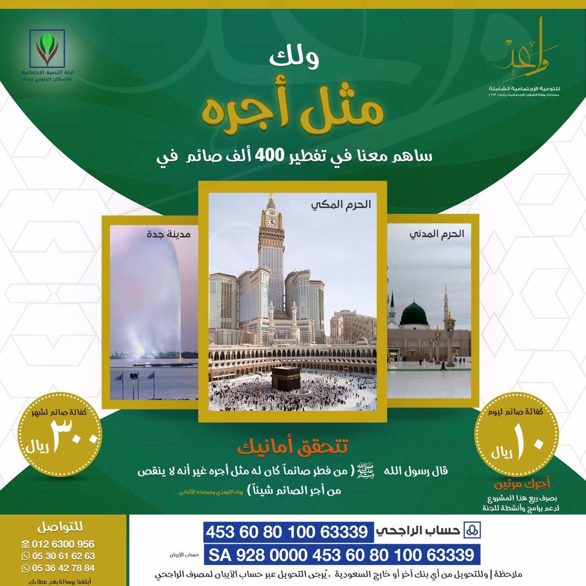 10 ريالات تفطر بها صائما في أحد الحرمين وأنت جالس في بيتك ...